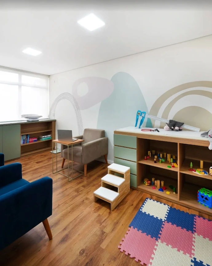 O atendimento presencial é realizado em consultório, em um ambiente acolhedor e preparado para receber crianças e suas famílias com conforto e segurança.